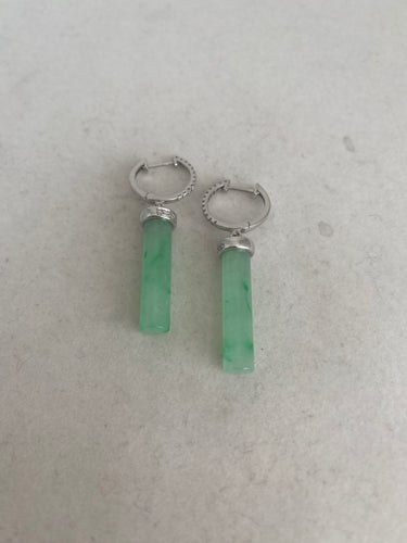 14 KARAT WHITE GOLD JADE CYLINDER DROP EARRINGS