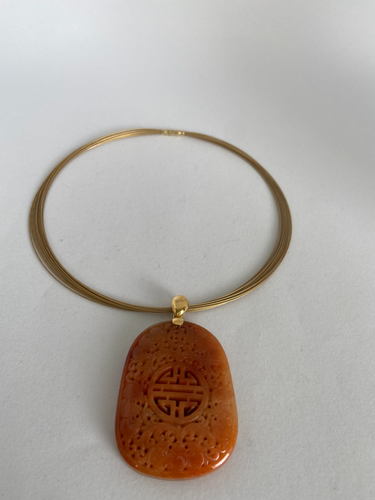 18K CARVED PEONY JADE MEDALLION PENDANT