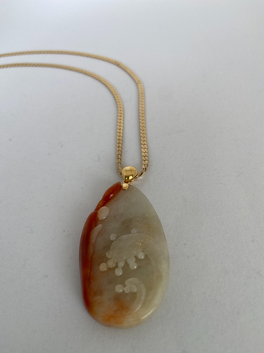 18K GOLD TRANSLUCENT CARVED JADE PENDANT