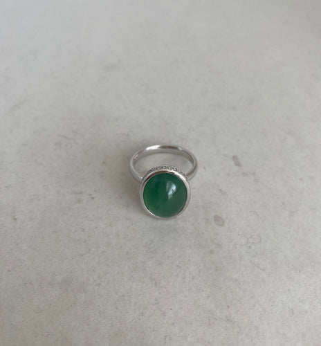 PLATINUM DEEP SPRING GREEN JADEITE JADE RING 16X12MM WITH DIAMONDS HALO DETAIL.