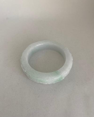 SQUARE SHAPE CARVED SNOW WHITE JADEITE JADE BANGLE