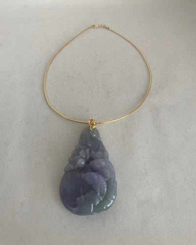 18K CARVED BLUE JADEITE JADE MEDALLION PENDANT