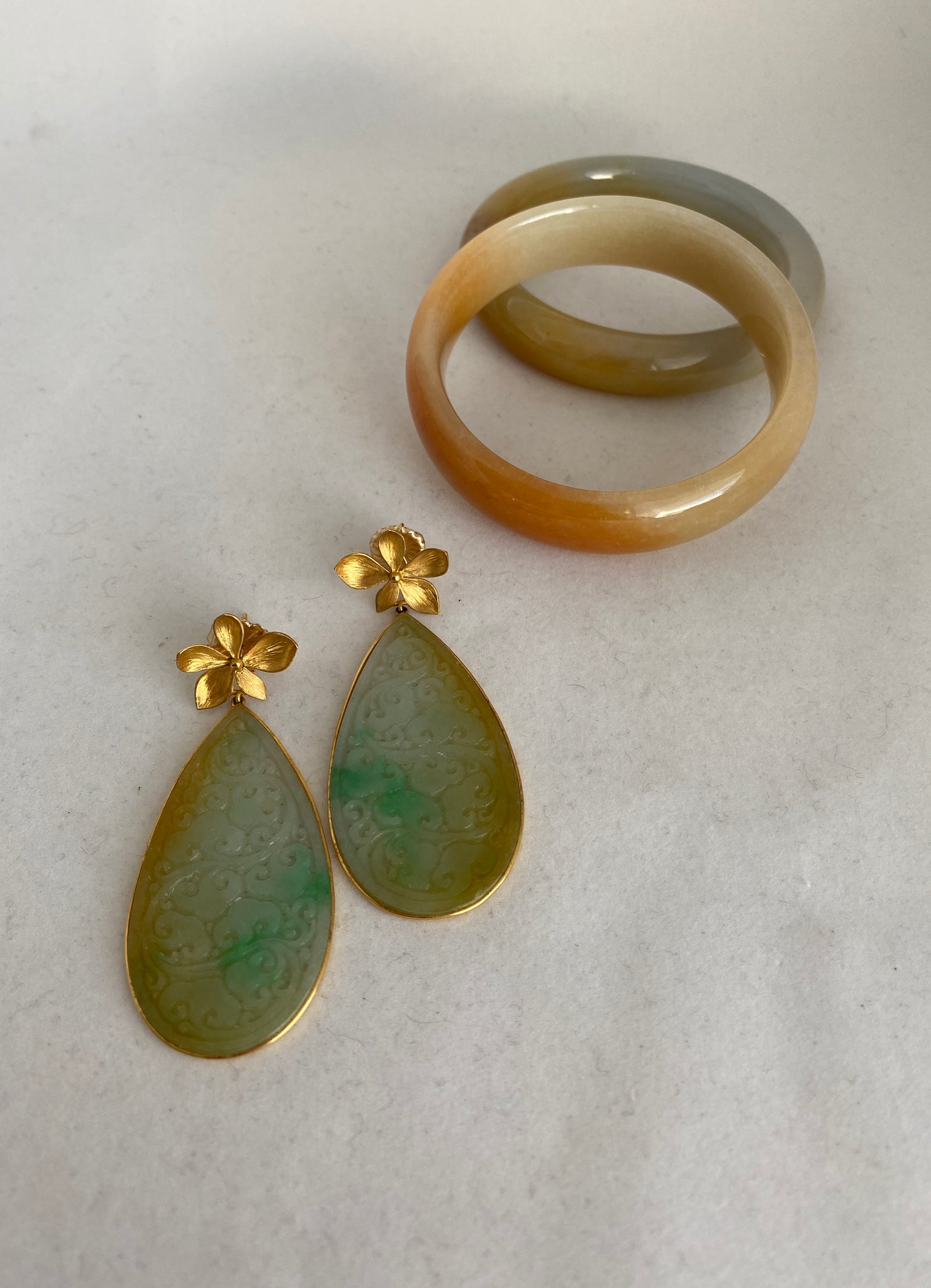 18K CARVED BUTTERSCOTCH / GREEN JADE EARRINGS