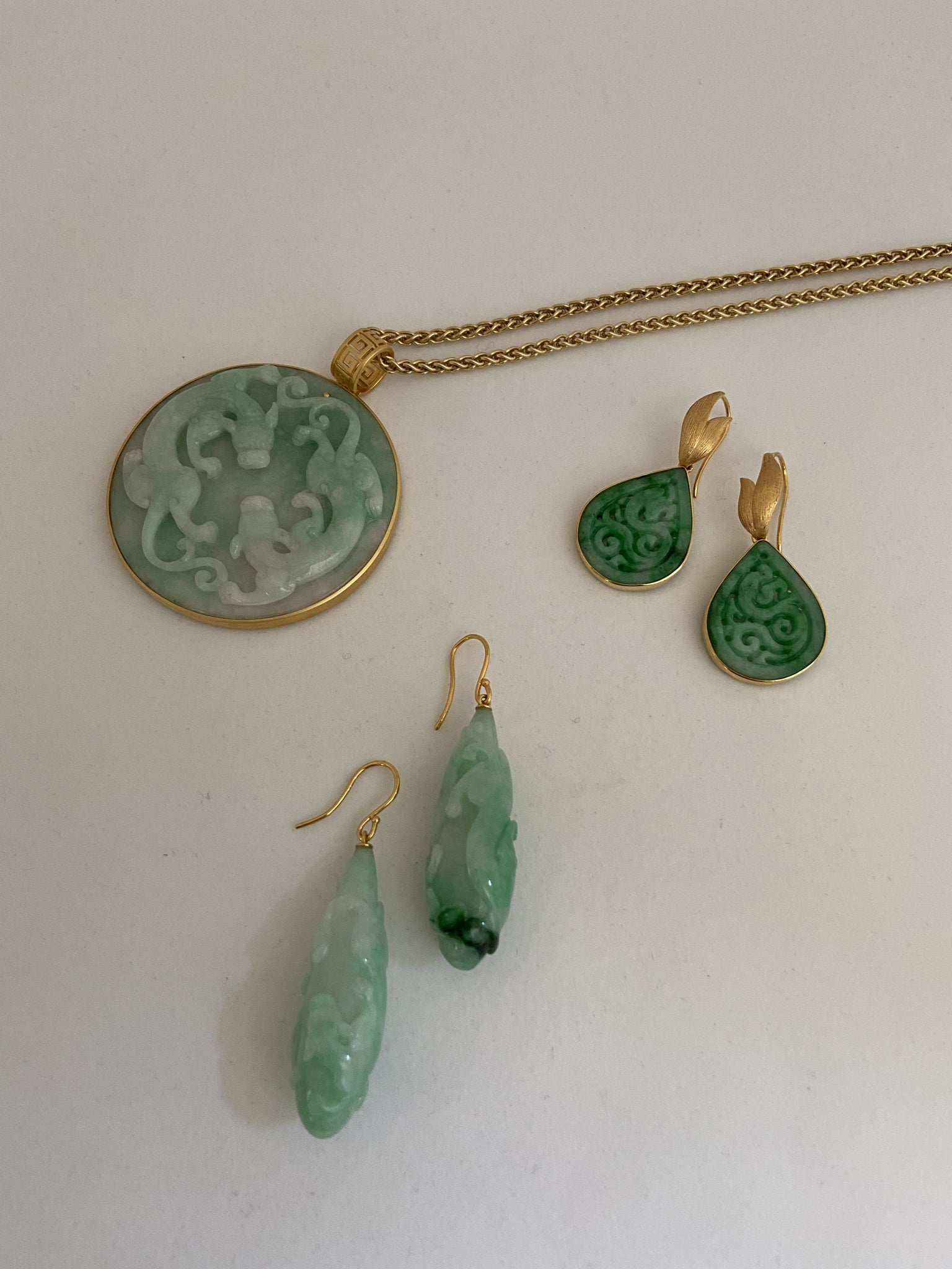 FABULOUSLY CARVED DOUBLE DRAGON APPLE GREEN JADE PENDANT, SO GLAMOROUS YET SO EASY TO WEAR AT ANY TIME. IT MEASURES ABOUT 44.5MM IN DIAMETER. DONE BY Mei Wang. CHAIN SOLD SEPARATELY.
