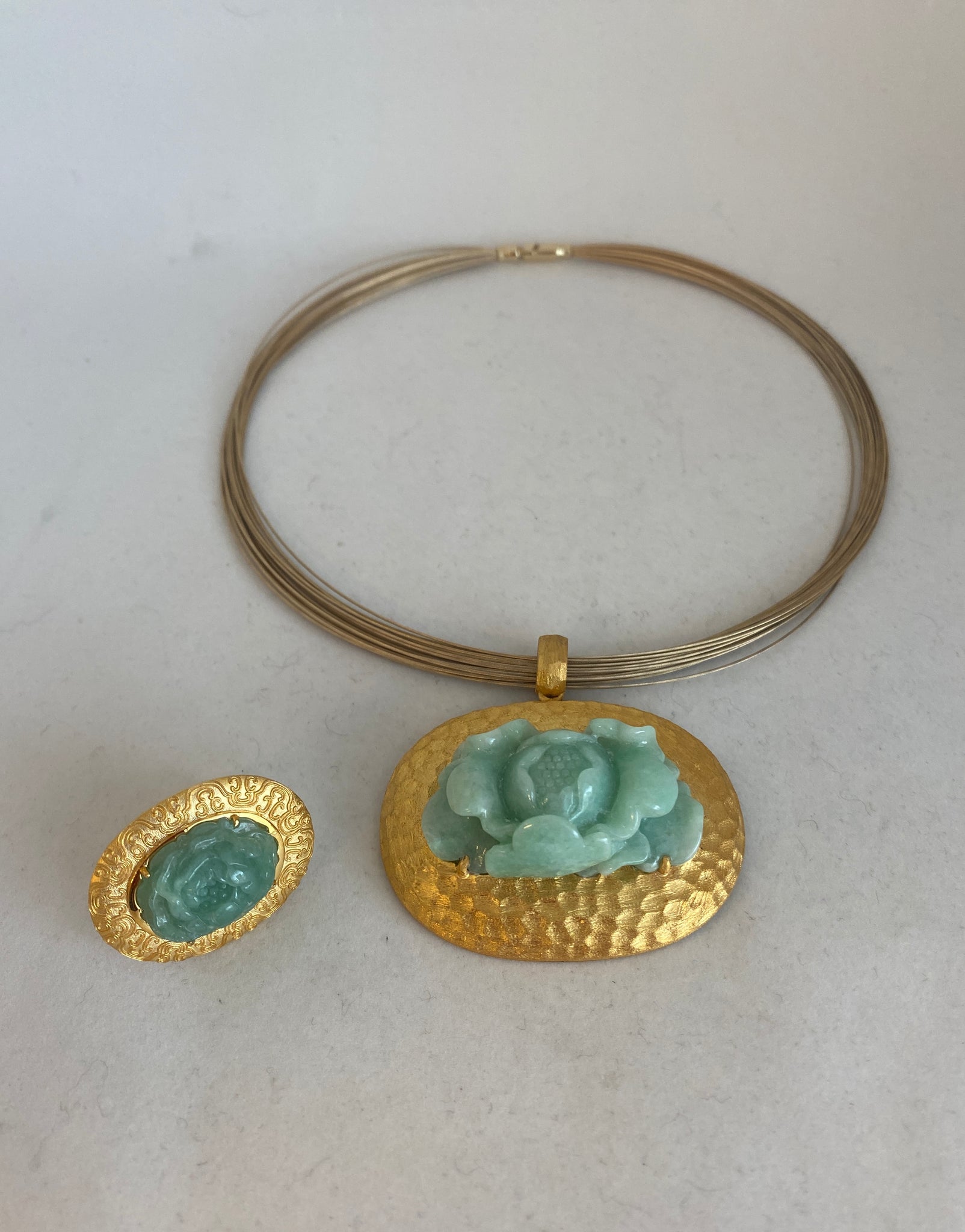 18K CARVED GREEN JADE PEONY RING