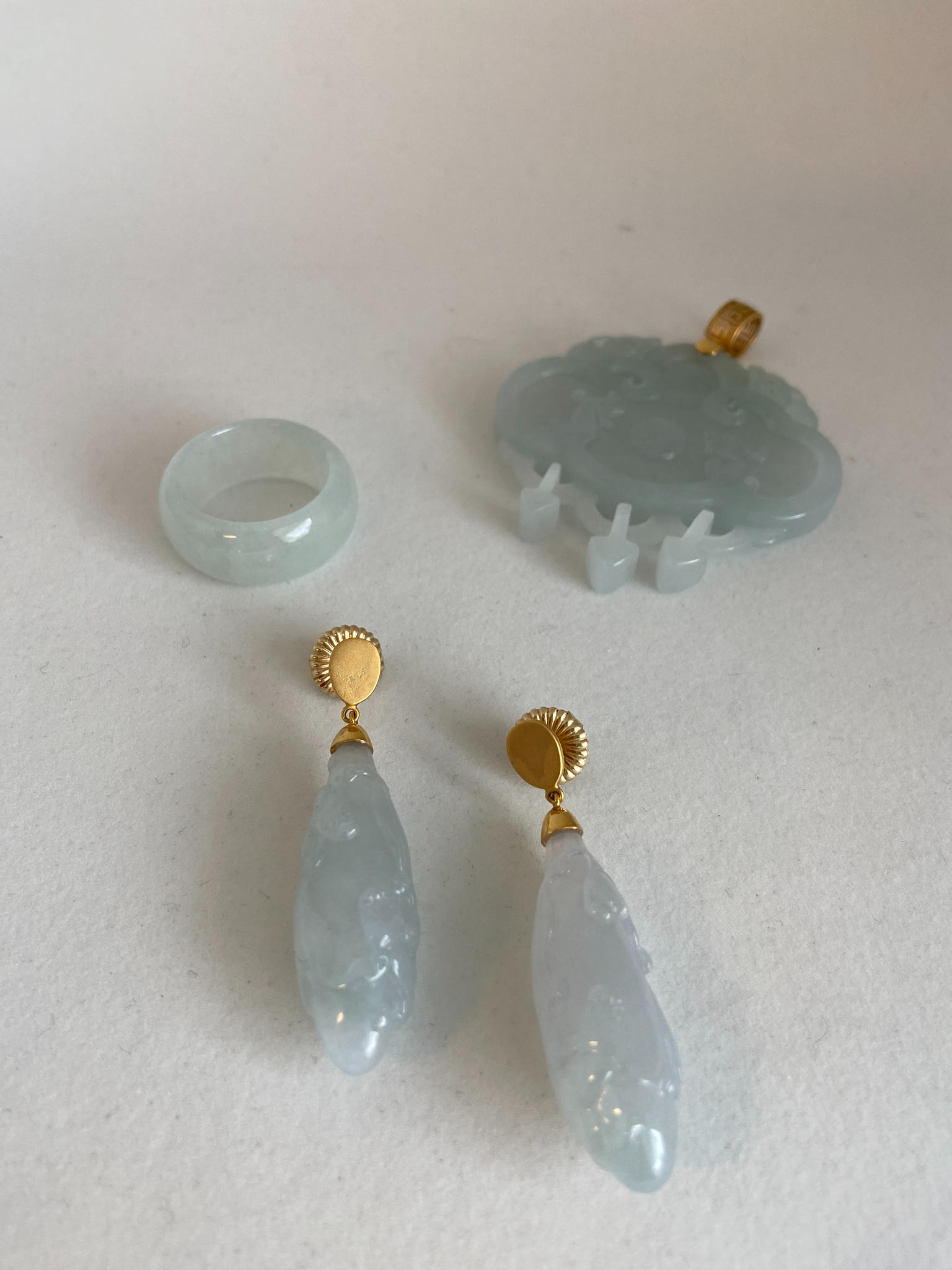 18K CARVED TRANSLUCENT ICE JADE EARRINGS