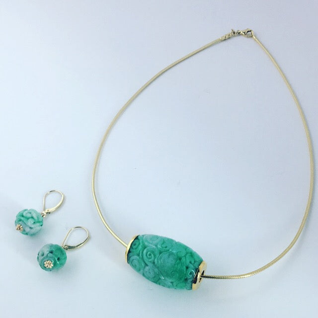 18K GOLD CARVED APPLE GREEN BARREL PENDANT