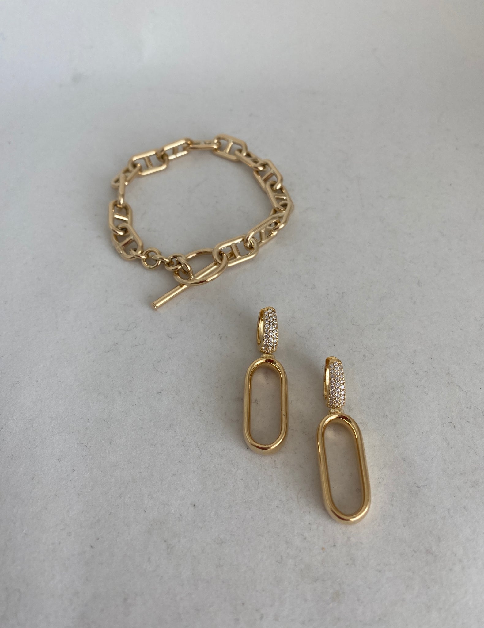 LOVELY YELLOW GOLD OVAL LINK EARRINGS, WITH PAVE DIAMONDS ON TOP, ITALIAN MADE.