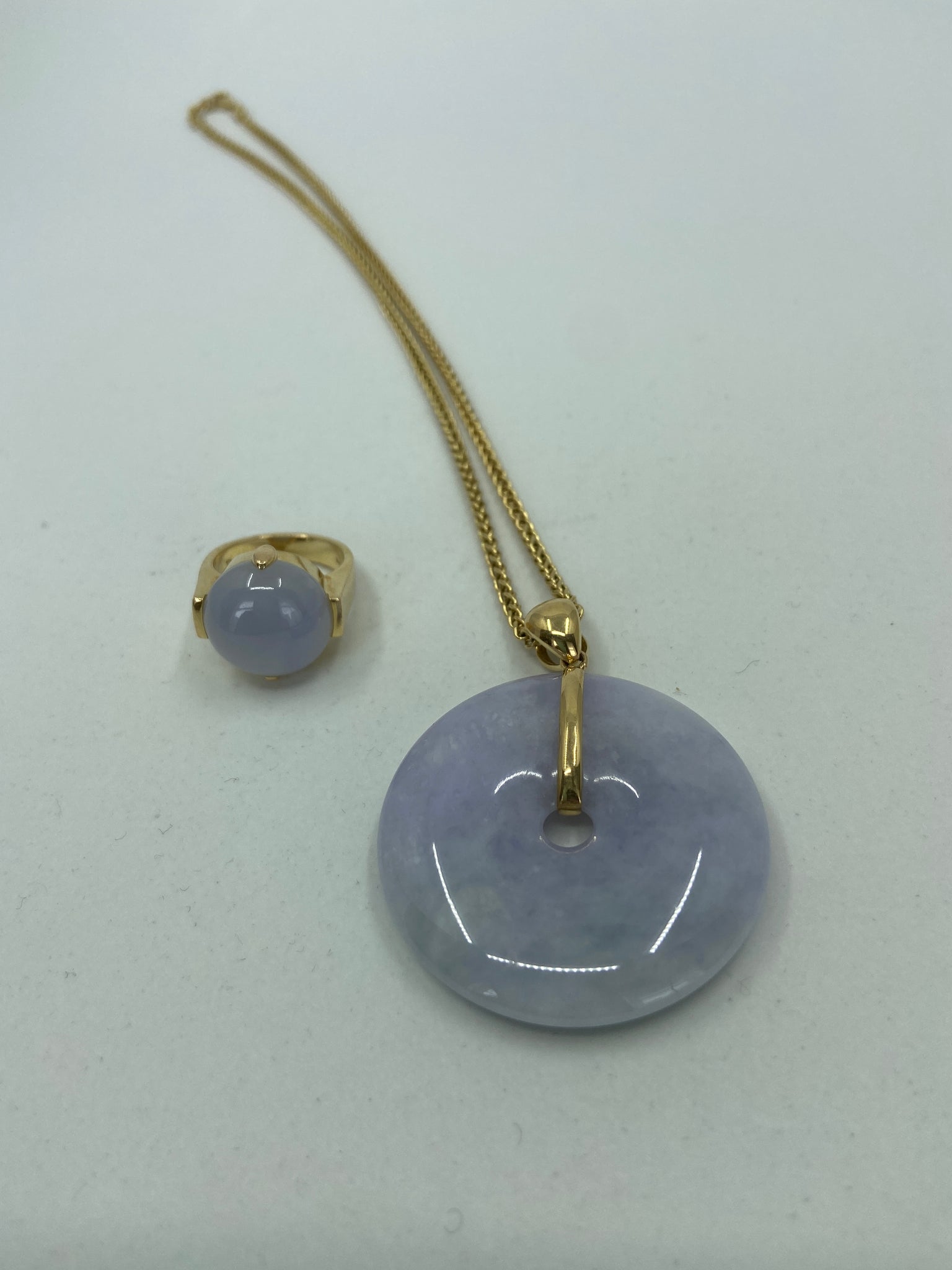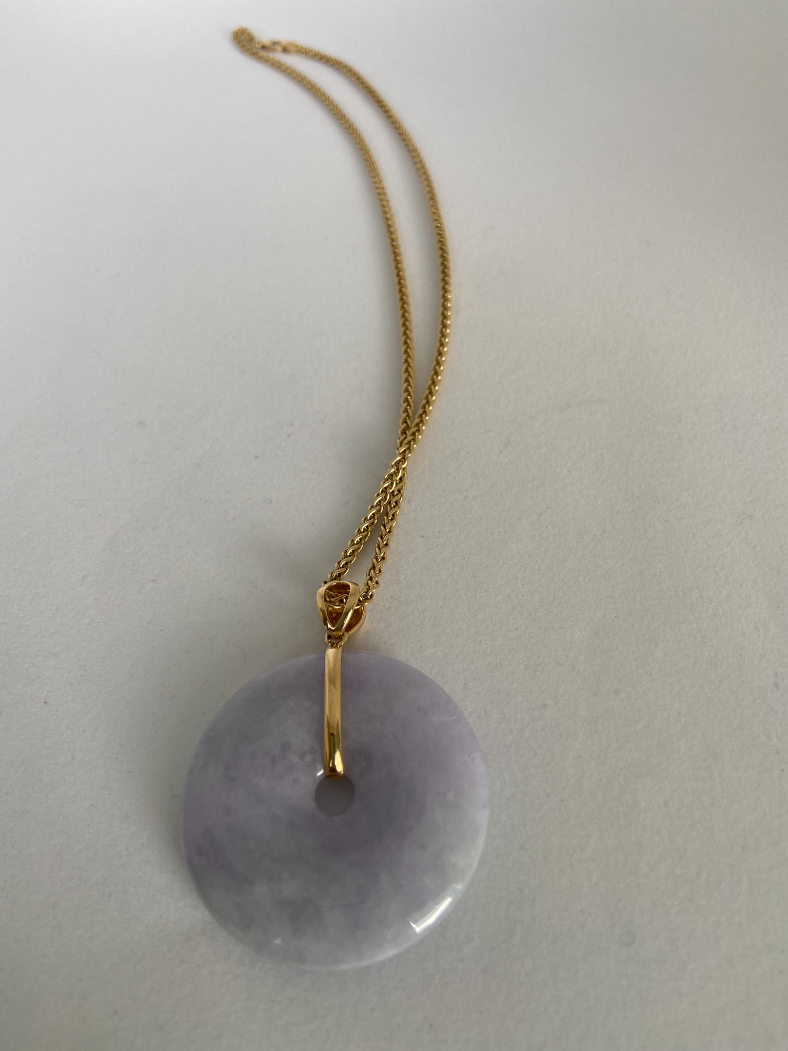 18K GOLD LAVENDAR "PI" JADE PENDANT NECKLACE