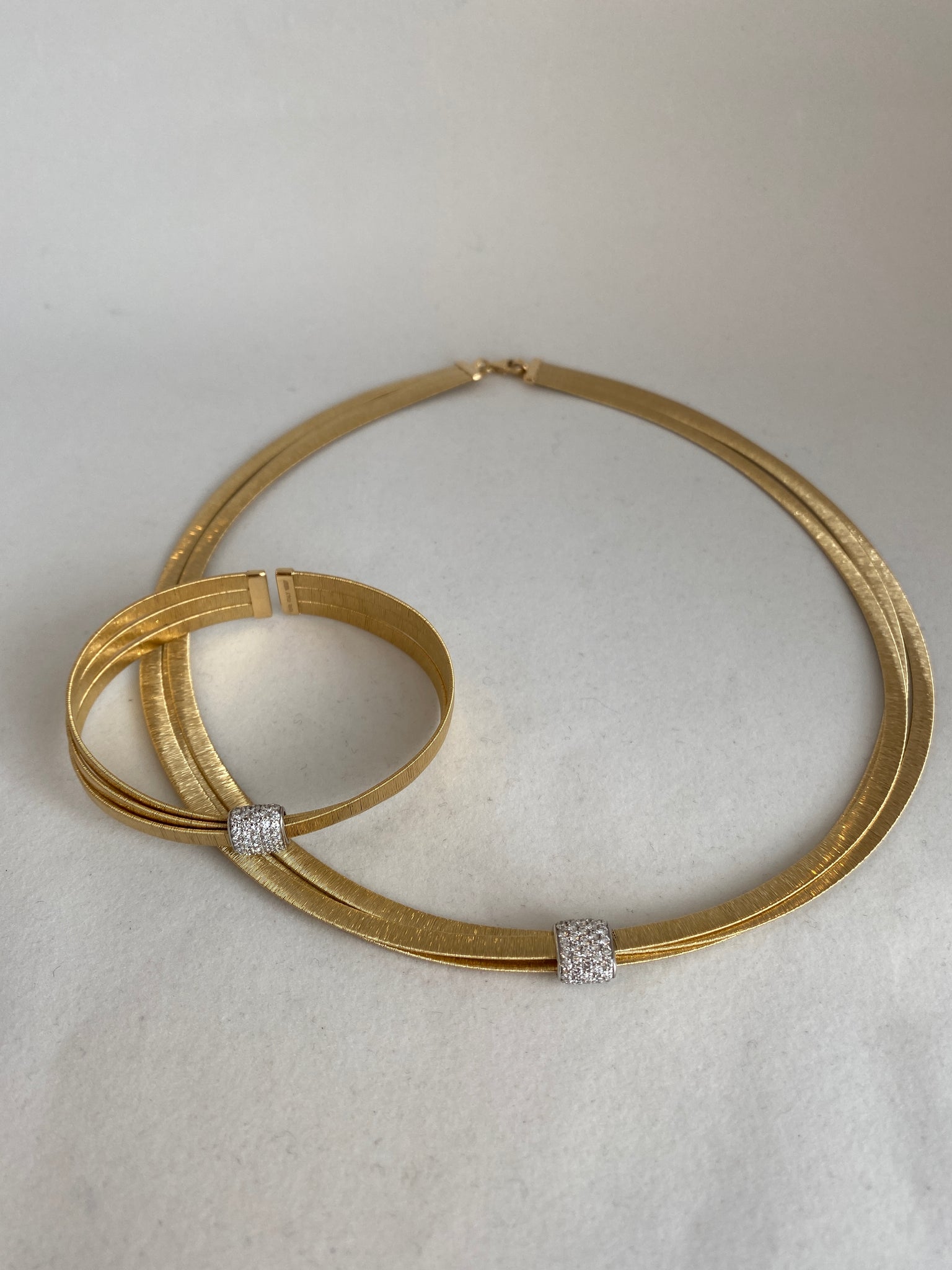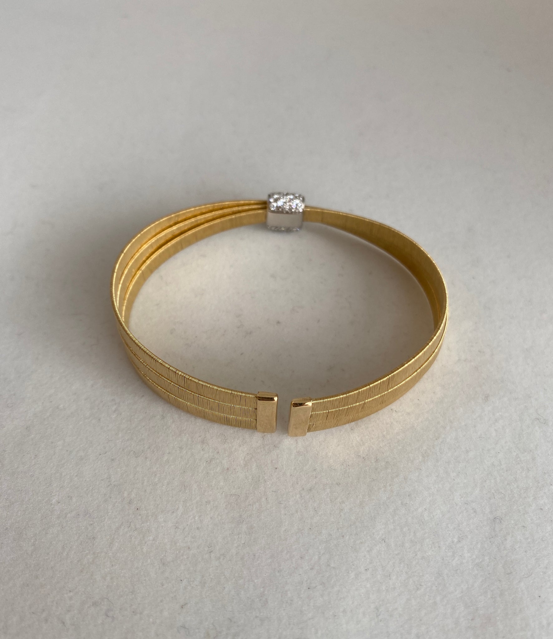18K TWO TONE GOLD CUFF WITH DIAMONDS. DIAMONDS .75 CTW. ITALIAN MADE.