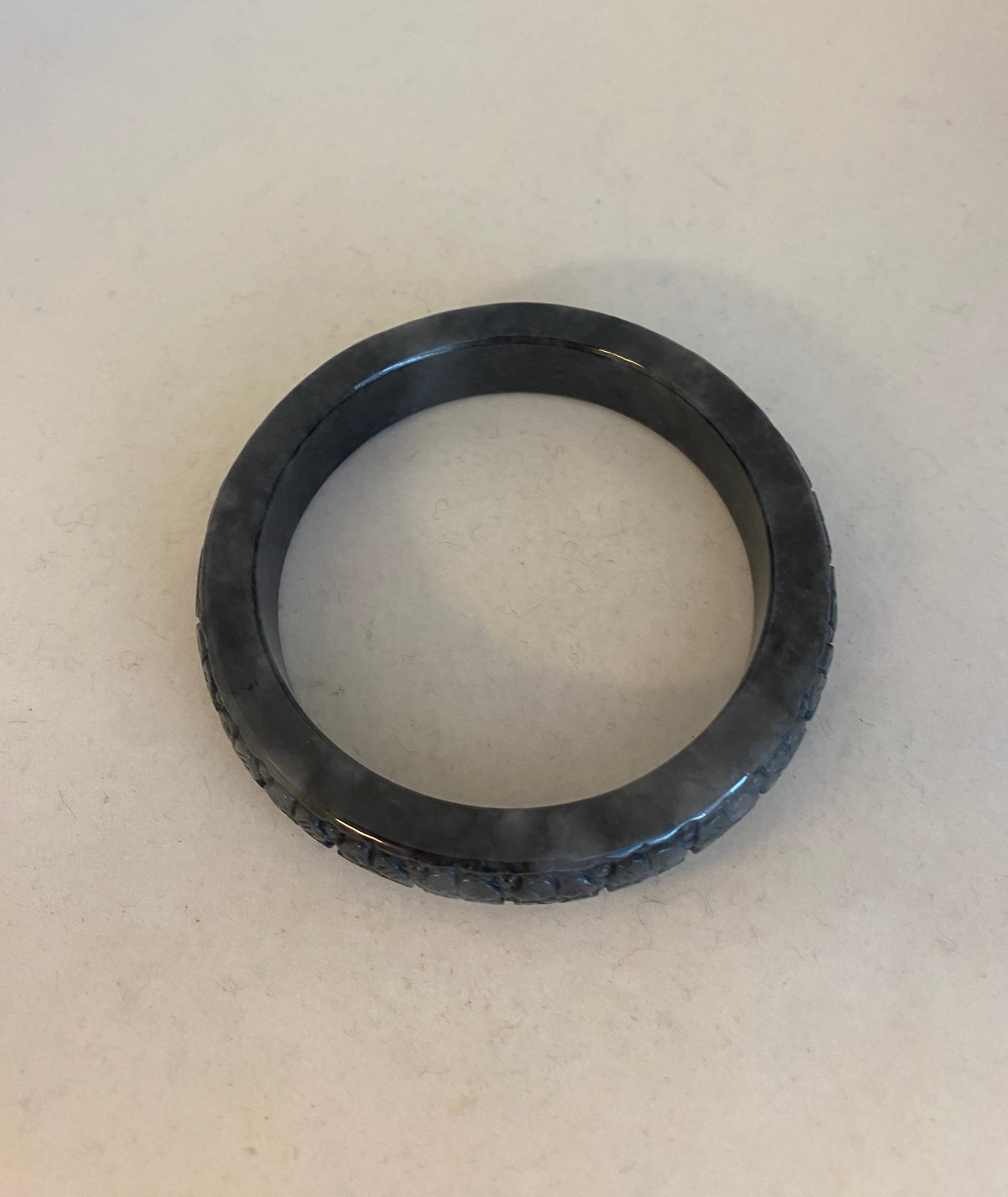 CARVED CHARCOAL GREY JADEITE JADE BANGLE